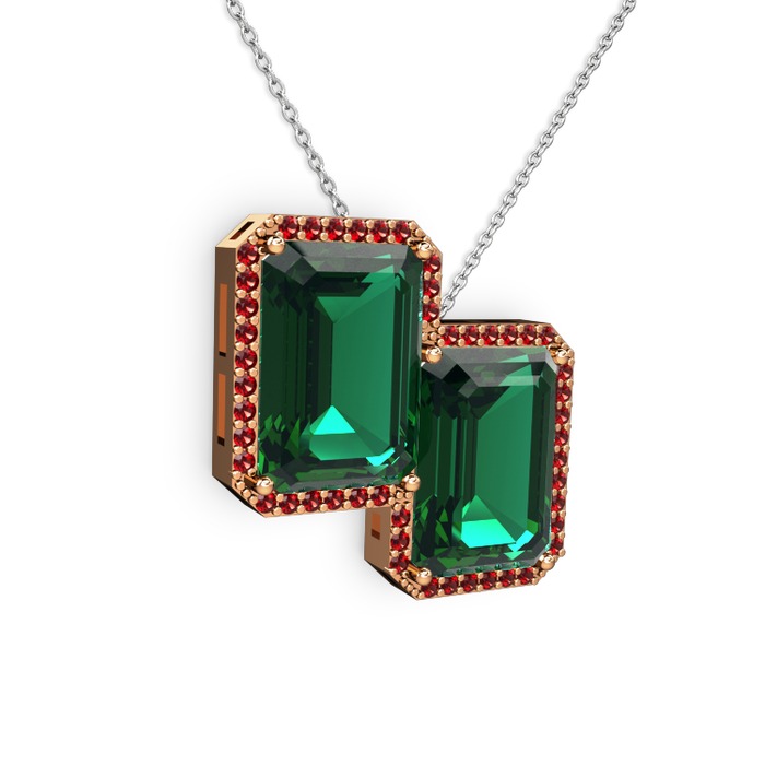 Yeşil kuvars ve garnet 8 ayar rose altın kolye (40 cm beyaz altın rolo zincir)