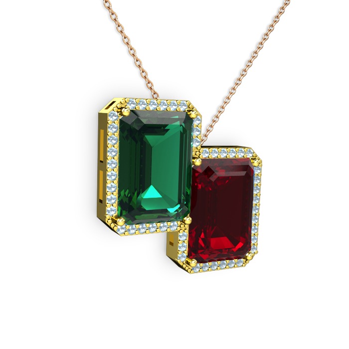Yeşil kuvars, garnet ve akuamarin 18 ayar altın kolye (40 cm rose altın rolo zincir)