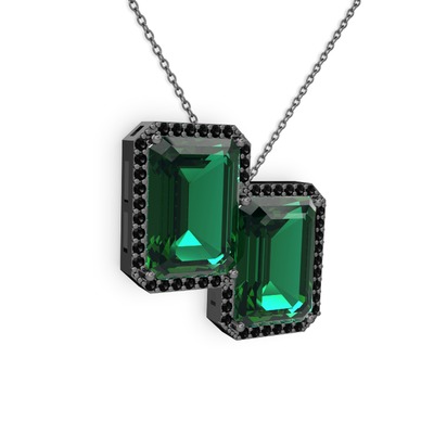 Yeşil kuvars ve siyah zirkon 925 ayar siyah rodyum kaplama gümüş kolye (40 cm gümüş rolo zincir)