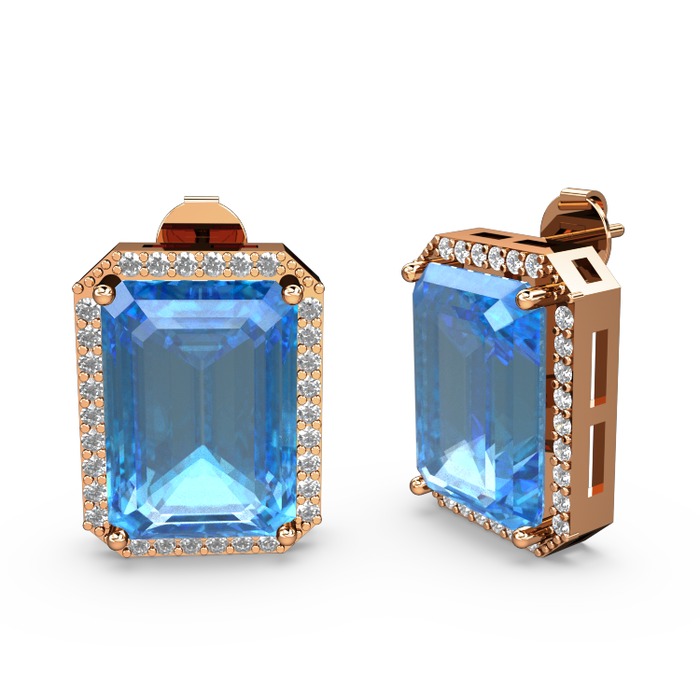 Akuamarin ve pırlanta 8 ayar rose altın küpe (0.66 karat)