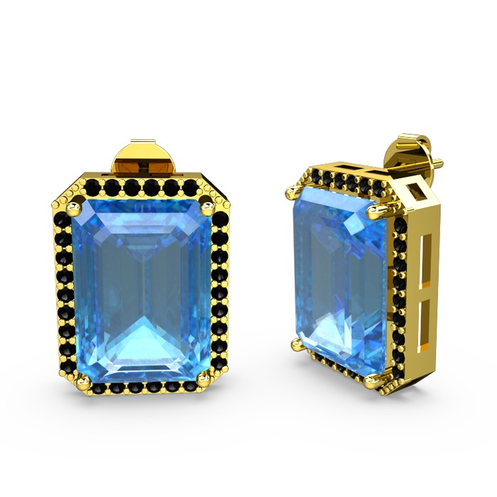Akuamarin ve siyah zirkon 925 ayar altın kaplama gümüş küpe
