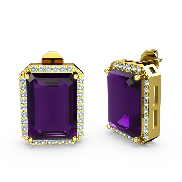Ametist ve akuamarin 18 ayar altın küpe