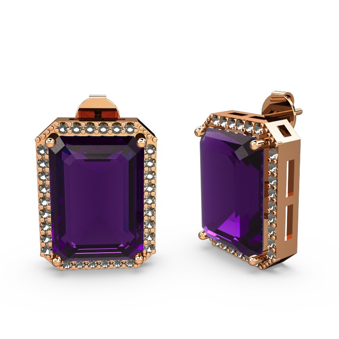 Ametist ve dumanlı kuvars 14 ayar rose altın küpe