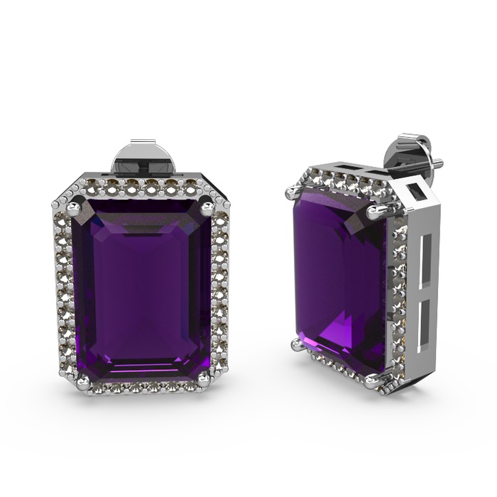Ametist ve dumanlı kuvars 18 ayar beyaz altın küpe