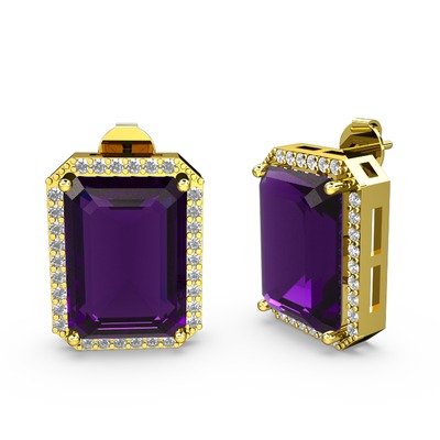 Ametist ve pırlanta 14 ayar altın küpe (0.66 karat)