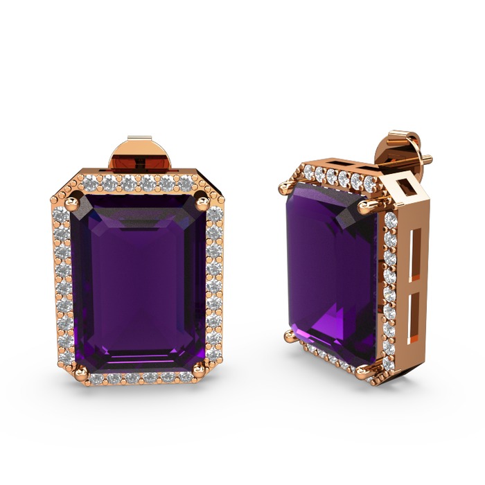 Ametist ve pırlanta 14 ayar rose altın küpe (0.66 karat)