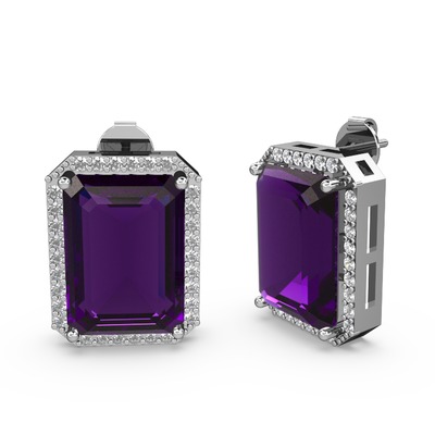 Ametist ve pırlanta 8 ayar beyaz altın küpe (0.66 karat)