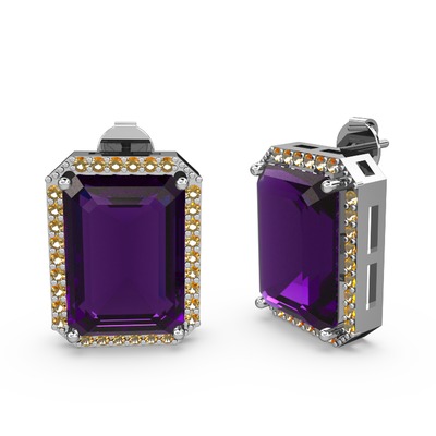 Ametist ve sitrin 925 ayar gümüş küpe