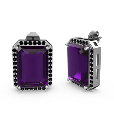 Ametist ve siyah zirkon 8 ayar beyaz altın küpe