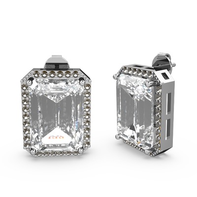Beyaz zirkon ve dumanlı kuvars 925 ayar gümüş küpe
