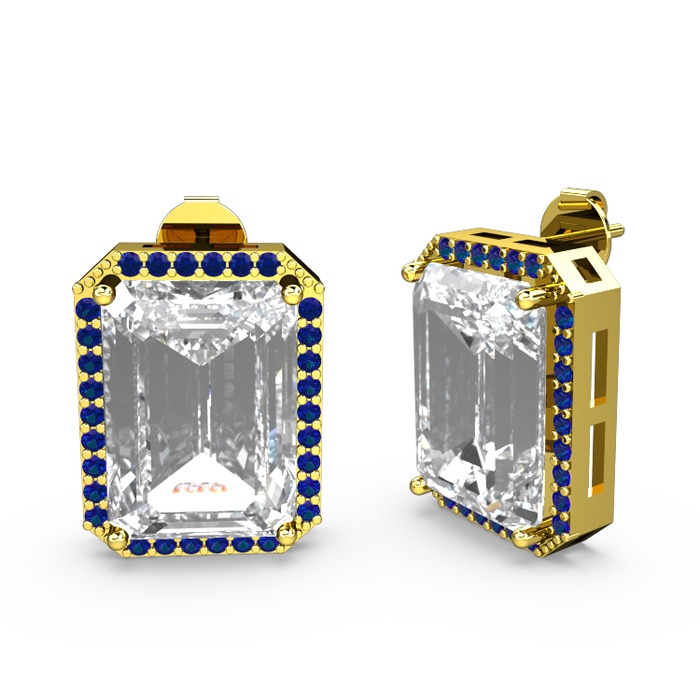 Beyaz zirkon ve lab safir 18 ayar altın küpe