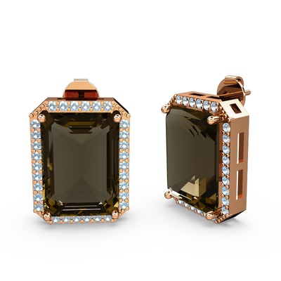 Dumanlı kuvars ve akuamarin 8 ayar rose altın küpe