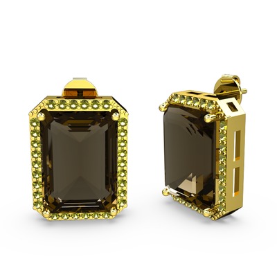 Dumanlı kuvars ve peridot 8 ayar altın küpe