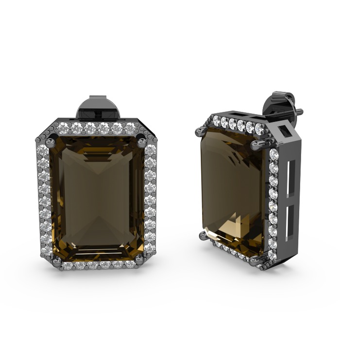 Dumanlı kuvars ve pırlanta 925 ayar siyah rodyum kaplama gümüş küpe (0.66 karat)