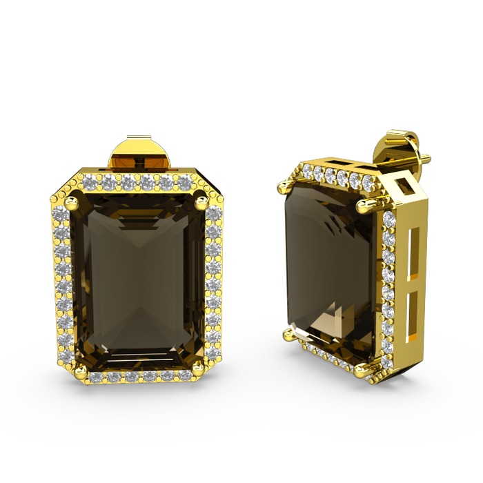 Dumanlı kuvars ve swarovski 8 ayar altın küpe