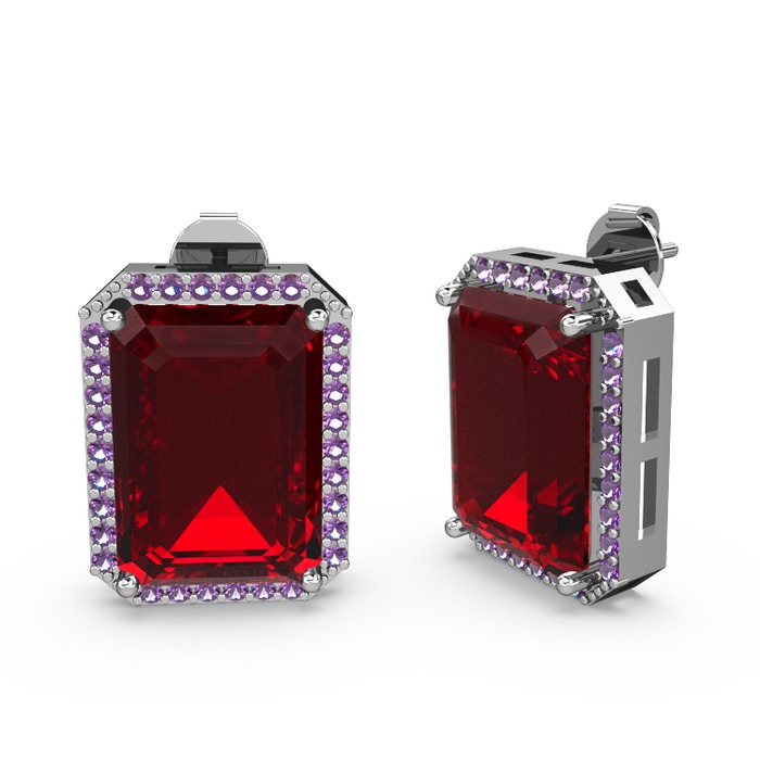 Garnet ve ametist 8 ayar beyaz altın küpe