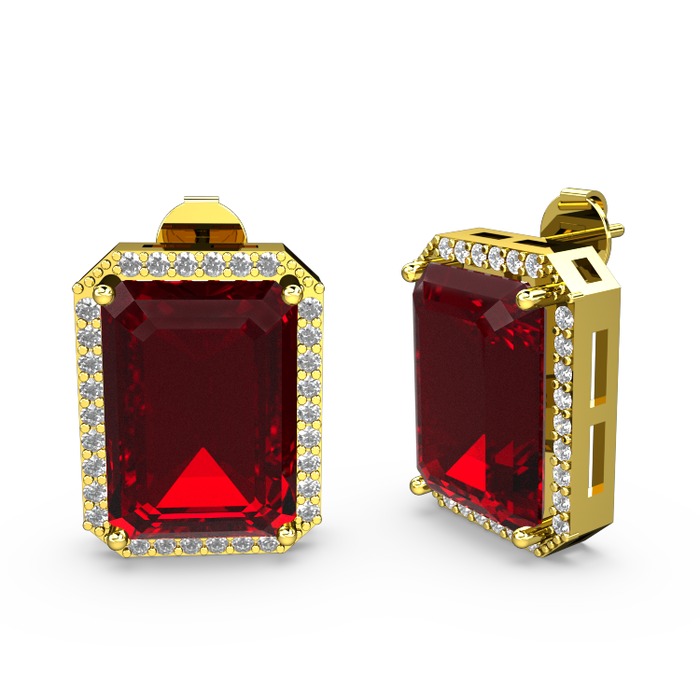 Garnet ve beyaz zirkon 14 ayar altın küpe