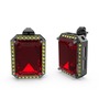 Garnet ve peridot 925 ayar siyah rodyum kaplama gümüş küpe