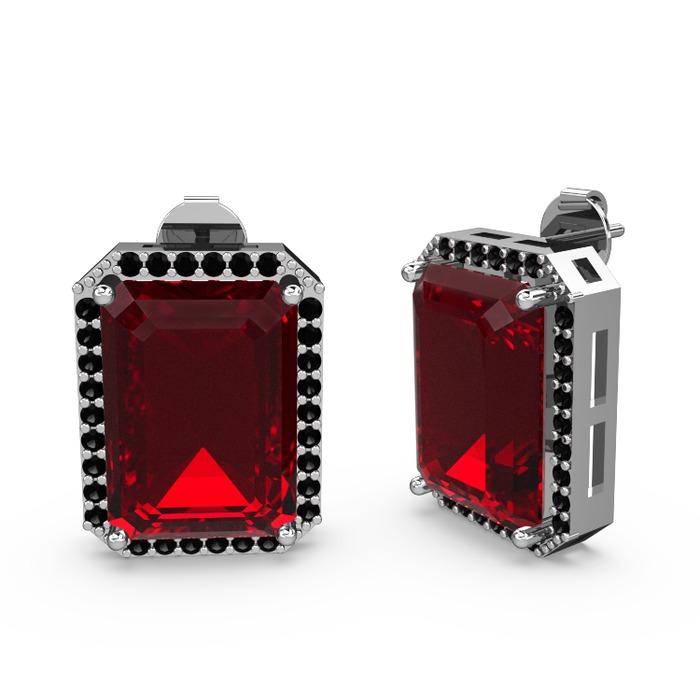 Garnet ve siyah zirkon 18 ayar beyaz altın küpe