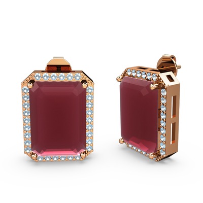 Kök yakut ve akuamarin 14 ayar rose altın küpe