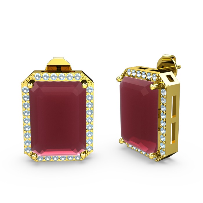 Kök yakut ve akuamarin 925 ayar altın kaplama gümüş küpe