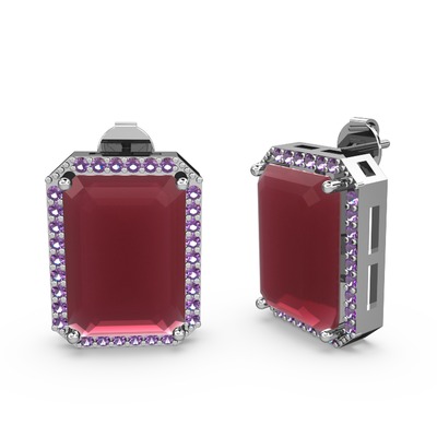 Kök yakut ve ametist 18 ayar beyaz altın küpe