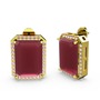 Kök yakut ve pembe kuvars 14 ayar altın küpe