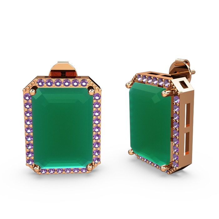 Kök zümrüt ve ametist 14 ayar rose altın küpe