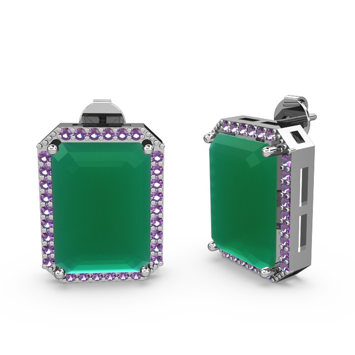 Kök zümrüt ve ametist 8 ayar beyaz altın küpe