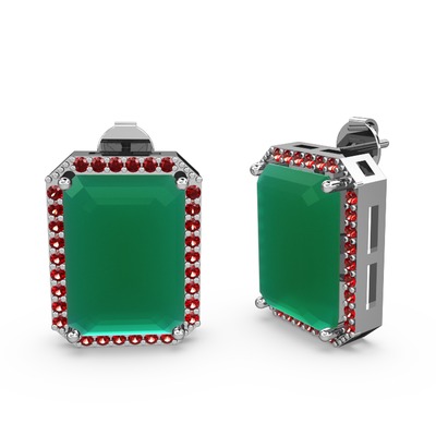 Kök zümrüt ve garnet 14 ayar beyaz altın küpe