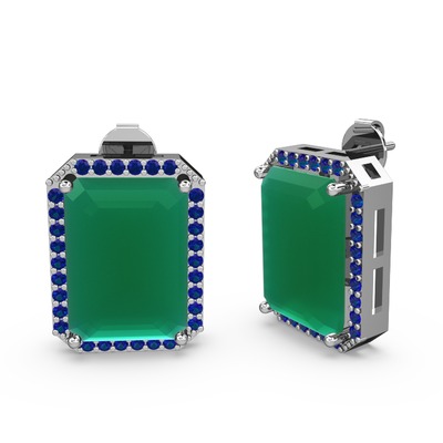 Kök zümrüt ve lab safir 14 ayar beyaz altın küpe