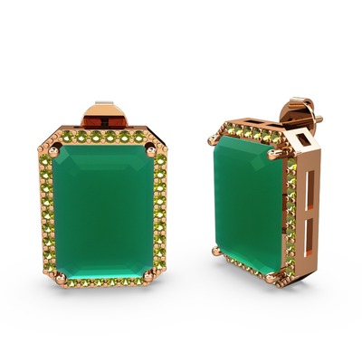 Kök zümrüt ve peridot 8 ayar rose altın küpe