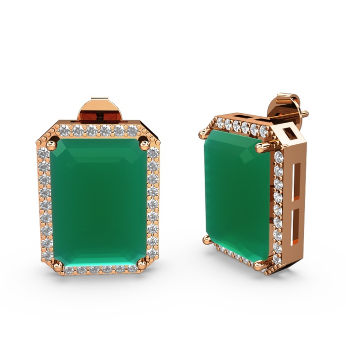 Kök zümrüt ve pırlanta 8 ayar rose altın küpe (0.66 karat)