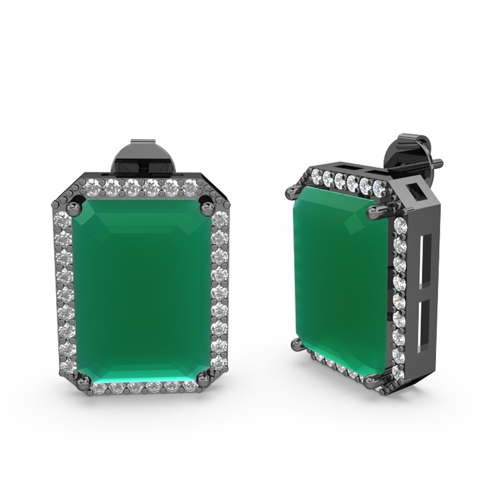 Kök zümrüt ve pırlanta 925 ayar siyah rodyum kaplama gümüş küpe (0.66 karat)