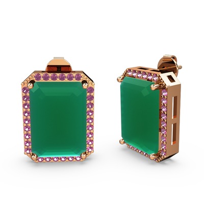 Kök zümrüt ve rodolit garnet 8 ayar rose altın küpe