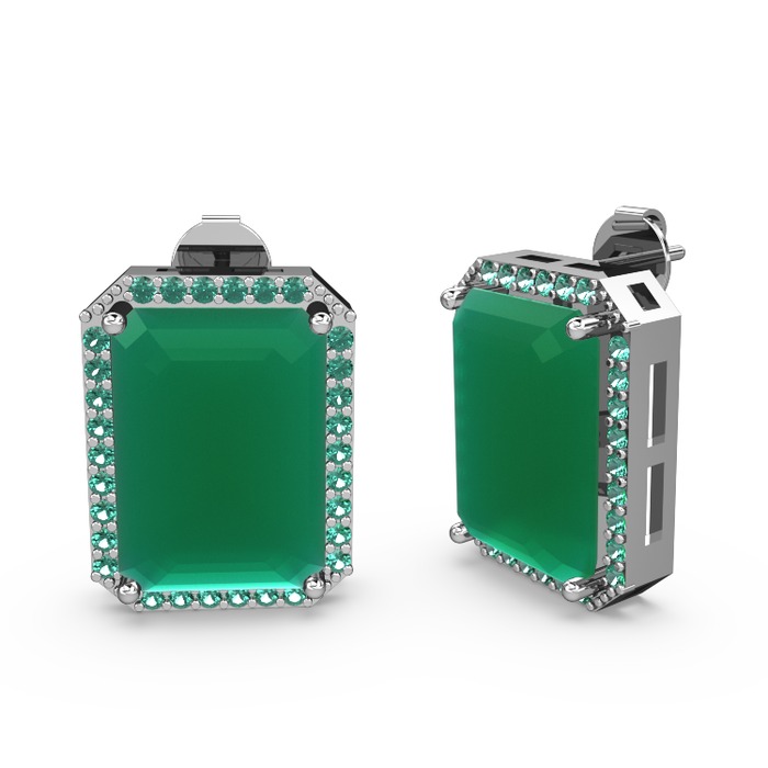 Kök zümrüt ve yeşil kuvars 8 ayar beyaz altın küpe