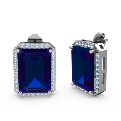 Lab safir ve akuamarin 8 ayar beyaz altın küpe