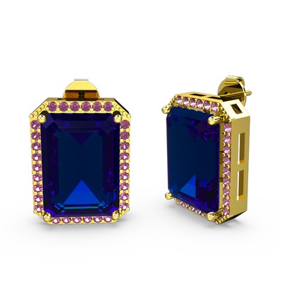 Lab safir ve rodolit garnet 18 ayar altın küpe