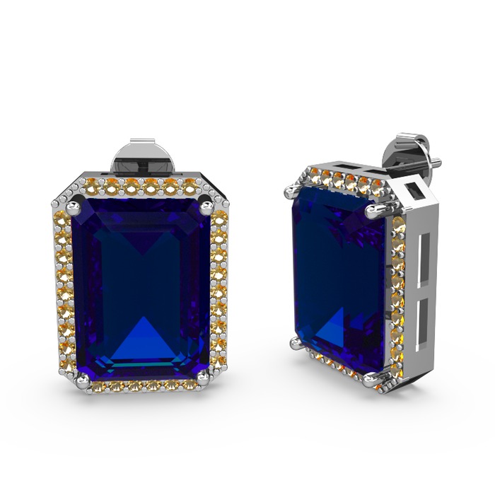 Lab safir ve sitrin 8 ayar beyaz altın küpe