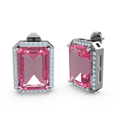 Pembe kuvars ve akuamarin 8 ayar beyaz altın küpe