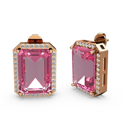 Pembe kuvars ve beyaz zirkon 14 ayar rose altın küpe