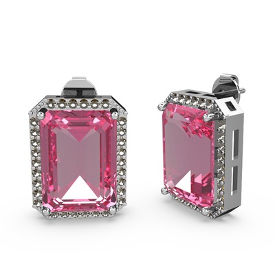 Pembe kuvars ve dumanlı kuvars 14 ayar beyaz altın küpe
