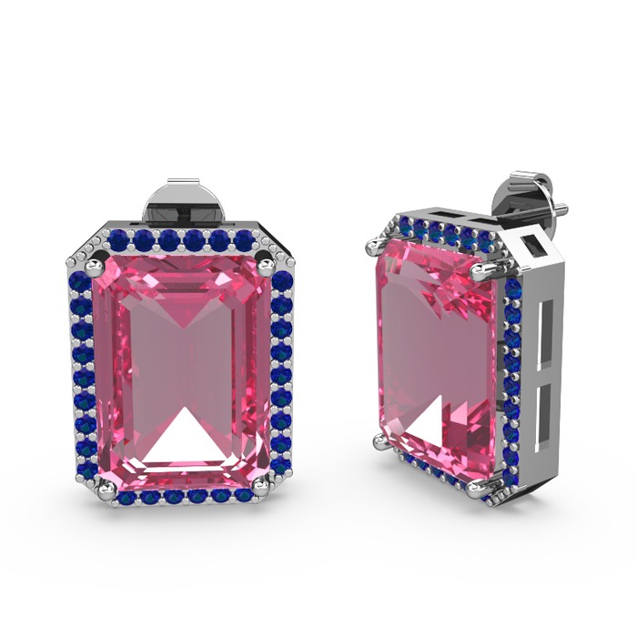 Pembe kuvars ve lab safir 14 ayar beyaz altın küpe