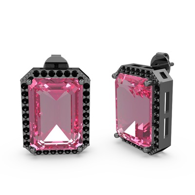 Pembe kuvars ve siyah zirkon 925 ayar siyah rodyum kaplama gümüş küpe