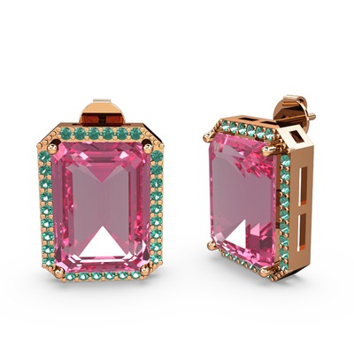 Pembe kuvars ve yeşil kuvars 14 ayar rose altın küpe
