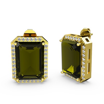 Peridot ve beyaz zirkon 925 ayar altın kaplama gümüş küpe