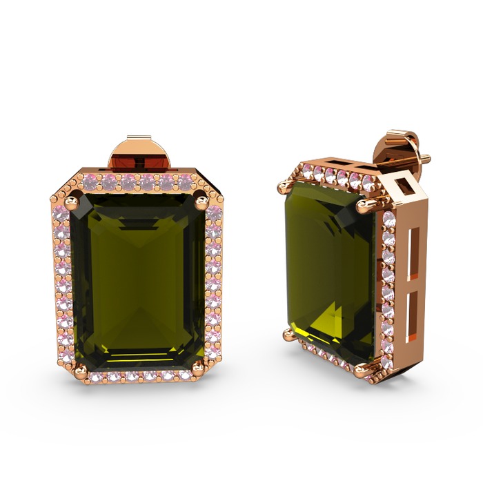 Peridot ve pembe kuvars 14 ayar rose altın küpe