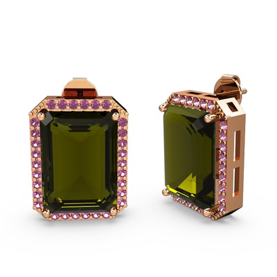 Peridot ve rodolit garnet 14 ayar rose altın küpe