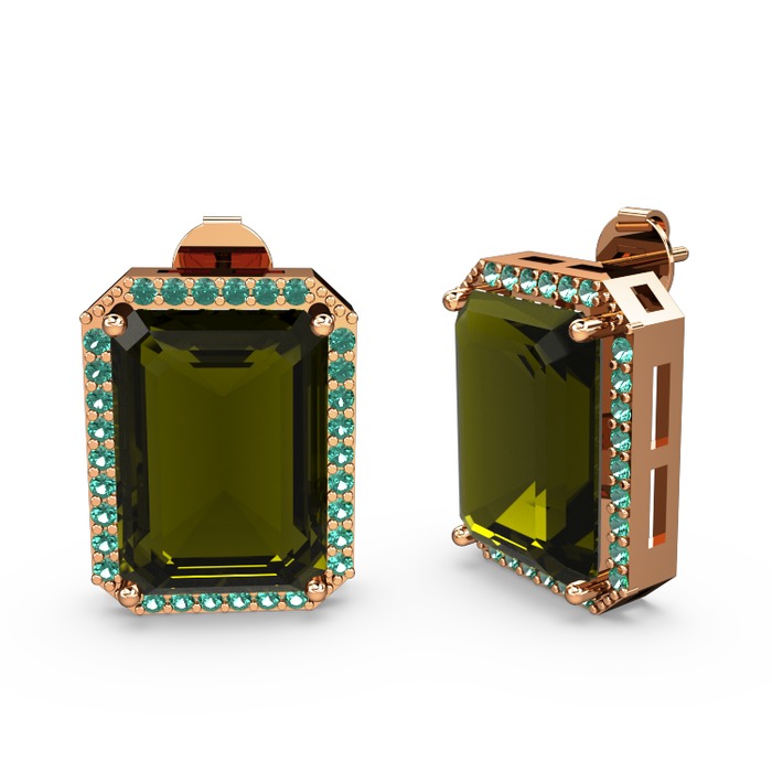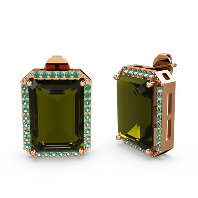 Peridot ve yeşil kuvars 8 ayar rose altın küpe