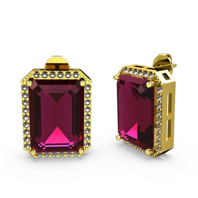 Rodolit garnet ve dumanlı kuvars 8 ayar altın küpe